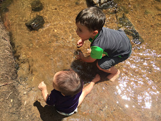 Our whole hike the preschooler kept insisting on throwing rocks in the creek, but we managed to keep that as the final destination point so we could get some hiking in. I think we went for about 45 minutes before turning around to head back to the cars, all the while scouting a good place to stop for splashing in the creek.