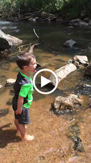 Our whole hike the preschooler kept insisting on throwing rocks in the creek, but we managed to keep that as the final destination point so we could get some hiking in. I think we went for about 45 minutes before turning around to head back to the cars, all the while scouting a good place to stop for splashing in the creek.